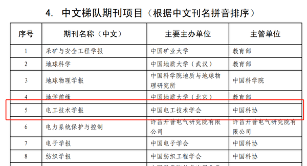 近日,中國科技期刊卓越行動計(jì)劃辦公室公布了中國科技期刊卓越行動計(jì)劃二期入選項(xiàng)目,《電工技術(shù)學(xué)報(bào)》成功入選中文梯隊(duì)期刊項(xiàng)目。
